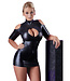 Laat je lichaam opvallen in dit spannende wetlook jurkje van het merk Cottelli Collection. Het jurkje is voorzien van een grote, ronde opening op het decolleté. Hierdoor wordt er een groot deel van de borsten zichtbaar. Op de schouders zijn dezelfde openingen geplaatst voor een opvallende twist. Het extra korte model bedekt de billen maar laat veel van de benen zien. Maak je look helemaal af met een paar mooie schoenen en daag je partner uit.