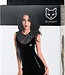 Lulu Dress er en skinnende sort kjole lavet af Wetlook materiale med blonde indlæg.