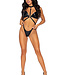 Body harnas van stretch vinyl bandjes en O-ring detail.