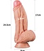 Deze dildo heeft een zeer brede schacht met extreme aderen op de schacht. Daarnaast heeft de dildo een sterke zuignap, zodat het op elk glad, hard oppervlak kan worden bevestigd voor handsfree gebruik.