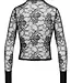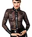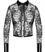 Denne sofistikerede skjorte fra Noir Handmade kombinerer transparente blomsterkanter med blanke wetlook-detaljer for at skabe et look, der er både stilfuldt og udfordrende. Kombinationen af materialer, sammen med den brede manchet og wetlook-kraven, giver designet et moderne og luksuriøst look.