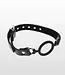 Der TABOOM OPEN RING GAG besteht aus Silikon und veganem Leder.
