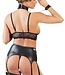 Der passende Straps-String hat drei verstellbare Strapse und ist im Schritt einladend offen.