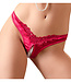 Deze uitdagende rode string met open kruis mag niet ontbreken in jouw garderobe. De rode string is gemaakt van een gladde, zachte stof en is schitterend afgewerkt met bloemendetails. Het open kruis is voorzien van een witte parelketting die zorgt voor meer sensatie tijdens het dragen. Wanneer ga jij deze sexy string dragen?
