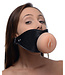 Op zoek naar een echt bijzondere ballgag? Dan is de Pussy Face Vagina Gag perfect voor jou! De kunstleren gag is voorzien van een realistische masturbator. Want waarom zal je kiezen als je je favoriete openingen tegelijkertijd kunt penetreren? Het is onmogelijk voor de sub om zijn/haar mond dicht te doen door de ronde koker. De masturbator is gemaakt heerlijk zacht materiaal dat levensecht aanvoelt. De rest is gemaakt van glad kunstleer. De band die achter het hoofd langs loopt is verstelbaar waardoor de gag altijd goed zal passen. De hoofdband heeft een omtrek van max. 67 cm.