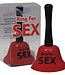 Zin in seks? Dan hoef je alleen deze bel te laten horen en je wildste fantasieën komen tot leven! De bel is gemaakt van metaal en heeft een felrode kleur. Op de bel staat de tekst "ring for sex". Leuk als cadeautje voor je partner of een vriend(in) voor bijvoorbeeld Kerst, Valentijnsdag of een verjaardag.