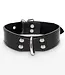 This vegan leather collar is lined with velvet, making it comfortable to wear and preventi