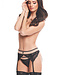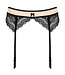 Elegante tweekleurige jarretelgordel. De kleurencombinatie van zwarte kant en beige tule ziet er bijzonder stijlvol uit. De vele elastische banden zijn verstelbaar en geven de jarretelgordel een bijzonder hoog draagcomfort.