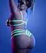 Questo set di reggiseno con design a gabbia elastica risponde alla luce ultravioletta.