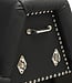 Dit elegante ontwerp combineert glad, zwart, veganistisch vriendelijk leer met opvallende metalen a