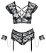 Geniet van deze delicate kanten set met rosé gouden details tijdens een spannende avond! De set bestaat uit een kanten top, een jarretelgordel en uitdagende polsboeien. Dankzij het elastische, zachte materiaal draagt deze set comfortabel. Maak de outfit af met een paar mooie kousen.