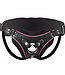 Dit mooie strap-on-harnas is gemaakt van kunstleer en afgewerkt met speelse roze randjes. Het harnas is volledig verstelbaar met gespjes op de heupen en bandjes aan de achterkant en geschikt voor een maximale heupomtrek van 109 cm. Hij is voorzien van zacht materiaal aan de binnenkant zodat hij comfortabel zit. De achterkant is volledig open zodat alles goed bereikbaar blijft. Het harnas is geschikt voor verschillende dildo's met een maximale diameter van 4.1 cm.