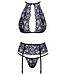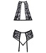 Deze prachtige lingerie set bestaat uit een beugelvrije bh en een lage string met bijpassende jarretelgordel.