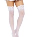 Hold Up Kousen - Wit Hul je benen in pure luxe en geef ze een onweerstaanbaar uiterlijk. De soepele stof voelt zijdezacht aan op de huid en geeft een verzorgd effect op uw been. De stof vormt zich naar het been en beweegt mee met alle bewegingen. Deze kousen blijven door de siliconen rand goed zitten zonder gebruik te hoeven maken van jarretels. Maar ze zijn uiteraard ook in combinatie met jarretels te gebruiken voor een extra sexy uitstraling. Kleur: Wit Materiaal: 85% Polyamide, 15% Elasthaan Denier: 15 Merk: Leg Avenue Maatvoering: S-L: tot 80kg Queensize: > 80-115kg