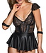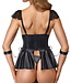 Spannende zwarte set van Cottelli BONDAGE met babydoll, kruisloze string en zachte handboeien.