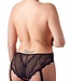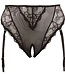 Ouvert jarretel slipje gemaakt van powernet met bloemen kant.