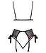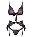 Deze volledig gemaakt fijn zwart powernet setje is voorzien met luxueus bloemenborduursel in roze en paars.