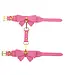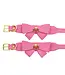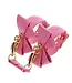Omarm je speelse kant met deze roze, veganistische PU-leren boeien, versierd met een speelse strik en verleidelijke vergulde metalen details.