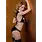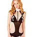 Deze rollenspelset is voorzien van wet-look accenten en jarretelbandjes.