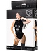 Wetlook bodysuit met hoge hals, met ritsen zowel op de borst als in de intieme zone.