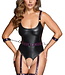 Cottelli BONDAGE kruisloze jarretel body inclusief riem met zachte armmanchetten.