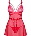 Deze Lovlea babydoll set in sensueel rood komt uit de Obsessive lijn. Het setje bestaat uit een los vallende top met mooi kant en gekruiste satijnen bandjes. De cups hebben geen voering en zijn zonder beugels. De bijpassende string is hoog opgesneden en maakt de set compleet. Het materiaal is elastisch voor een mooie pasvorm.