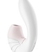 The Satisfyer Supernova seduces the clitoris with sensual air-pulse waves while stimulating the G-spot with powerful vibes. Thanks to the flexible chain joint, the silicone vibrator adapts to your anatomy to delight you with perfect stimulation. Flexible shape. Stimulates the clitoris with non-contact pressure waves, massaging the G-spot with vibrations at the same time. The two motors can be controlled separately, enabling numerous combinations of vibrations.