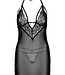 Koronkowa babydoll z paskami i stringami - Seksowna koszulka typu halter z rozcięciami po bokach i klipsem w kształcie serca przy dekolcie. Miękka i przezroczysta siateczka, kobiece detale z koronki z wzorem w serce i gumki. W komplecie stringi z siateczki.