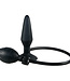 De zwarte siliconen anaalplug is door de gladde vorm gemakkelijk in te brengen, en met de handpomp op te blazen tot een diameter van wel 10 cm!