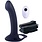 Strap-on vibratório oco de silicone recarregável de 24 cm com anel esférico, preto