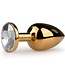 Goudkleurige metalen buttplug met transparante steen Leia mais..