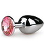 Metalen buttplug met roze steen - zilverkleurig Leia mais..
