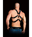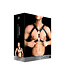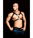 In dit harnas zal je bewonderende blikken van alle kanten krijgen! Doordat de twee grote O-ringen verbonden zijn met een lederen riem gaat het harnas met twee aansluitingen over het hele bovenlichaam! De riemen onder de armen en onder de borst hebben metalen gespen, waardoor het geheel gemakkelijk versteld kan worden. De sterke metalen studs zorgen voor de passende afwerking van deze mooie uitrusting!
