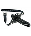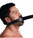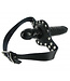 Het Dildo mondstuk met riem heeft aan de binnenkant een prop die je in de mond neemt. Aan de buitenzijde kijkt de dildo fier vooruit naar wat komen gaat. Klaar voor seksen met de mond. Het speeltje heeft een verstelbare lederen band met gespen achter het hoofd en een met studs beslagen gebitsbeschermer.