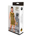 Det tunna svarta tyget och de gula Datex-ränderna följer kroppens kurvor smidigt.