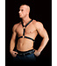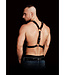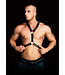 Met een grote O-ring in het midden van de borststreek die vastgemaakt is op stevig zwart leer en versterkt is met sterke studs is dit harnas een absolute blikkenvanger! Op beide zijden van dit centraal stuk zijn er nog twee o-ringen en gebonden lederen riemen van hoge kwaliteit die met elkaar verbonden zijn onder de armen en op de schouders. Beide schouderbandjes hebben stevige gespen, zodat het harnas comfortabel aansluit.